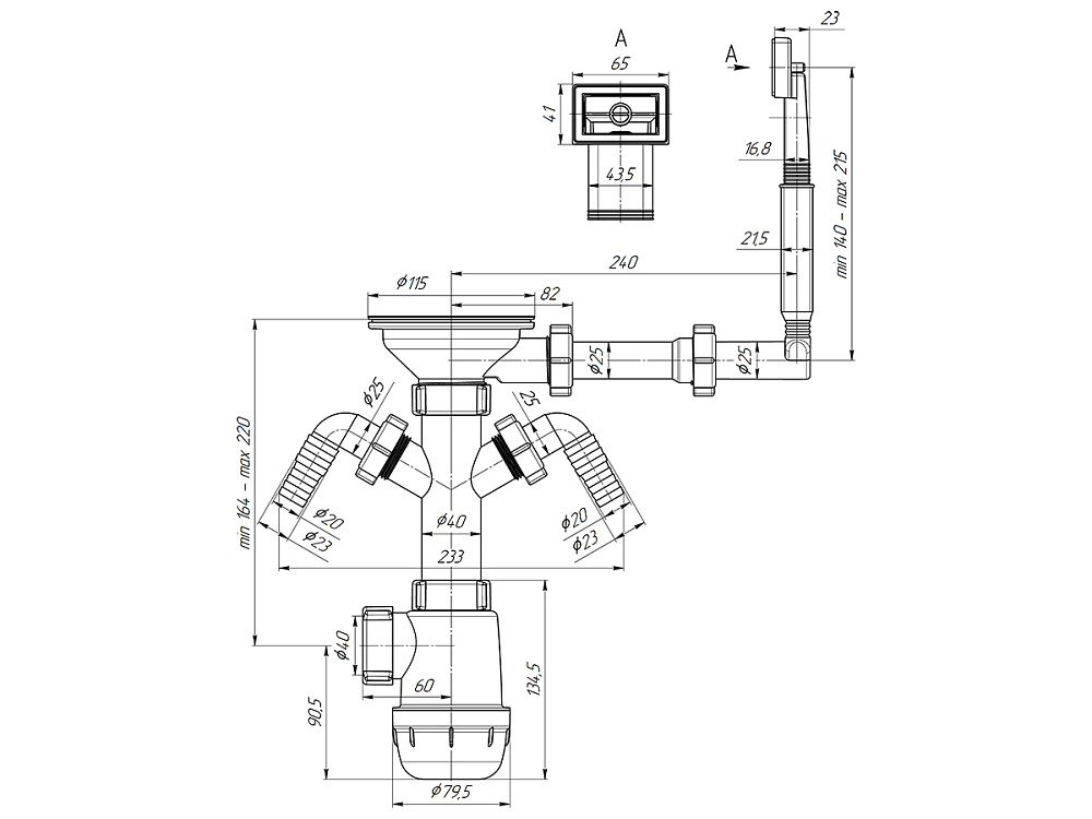 Сифон АНИ Пласт Грот A0146 — это многофункциональное решение для организации слива воды в кухонной мойке, оснащённое жёстким переливом и двумя отводами для подключения стиральной и посудомоечной машины. Такая конструкция обеспечивает защиту от переполнения и позволяет подключить сразу два бытовых прибора, что особенно удобно для современных кухонь. Диаметр выпуска составляет 3 1/2 дюйма, а диаметр трубы — 40 мм, что делает этот сифон совместимым с большинством стандартных моек.