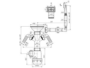 Сифон для мойки АНИ пласт Грот A0146 3 1/2 дюйма 40 мм с жестким переливом и двумя отводами для стиральной машины