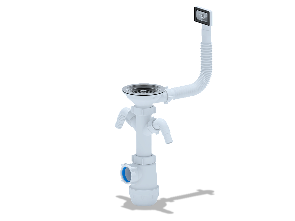 - Два отвода позволяют одновременно подключить стиральную и посудомоечную машину, экономя место и упрощая организацию кухонного пространства.