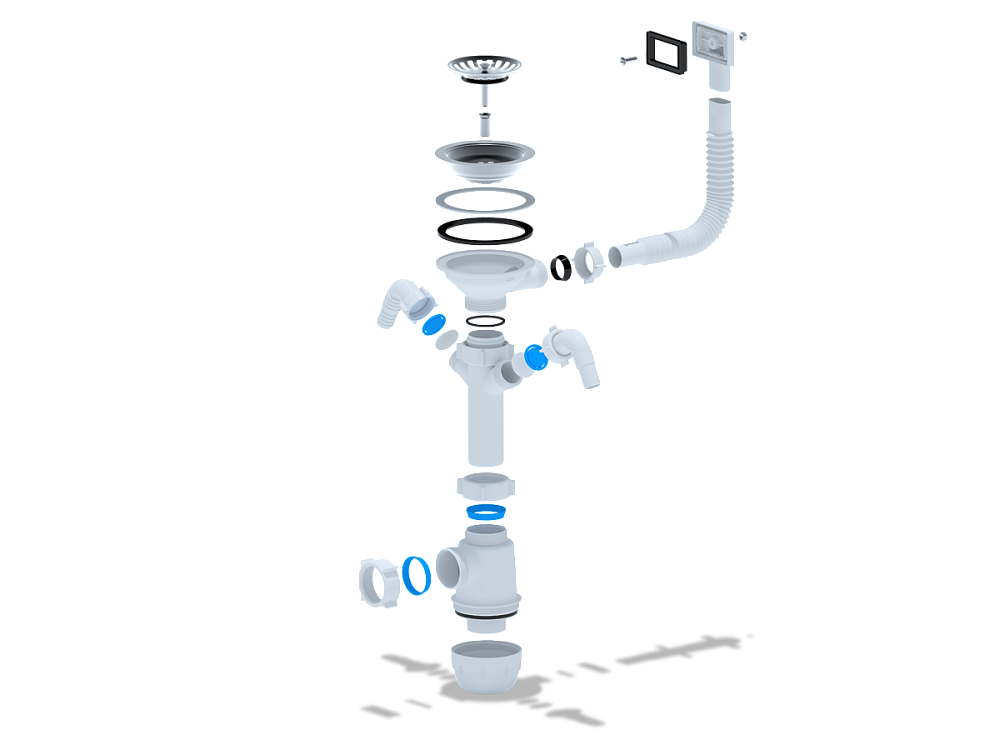 - Гибкий перелив обеспечивает надёжную защиту от переполнения мойки и позволяет легко подстроиться под особенности конструкции вашей раковины.