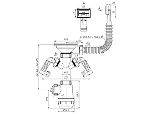 Сифон для мойки АНИ пласт Грот A0146S 3 1/2 дюйма 40 мм с гибким переливом и двумя отводами для стиральной машины