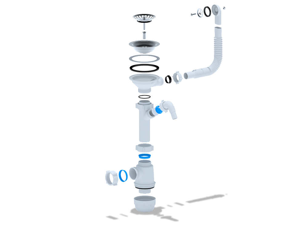 - Гибкий перелив обеспечивает надёжную защиту от переполнения мойки и позволяет легко подстроиться под особенности конструкции вашей раковины.