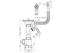 Сифон для мойки АНИ пласт Грот A1042S 3 1/2 дюйма 40 мм с гибким переливом и отводом для стиральной машины