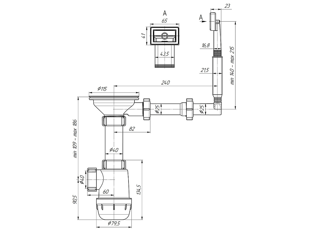 - Стандартные размеры делают сифон универсальным выбором для большинства кухонных моек.