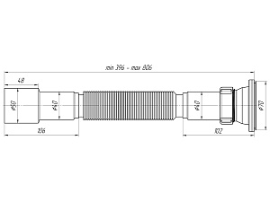 - Гофрированная конструкция позволяет регулировать длину сифона от 396 до 806 мм, обеспечивая гибкость при установке.