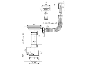 Сифон для мойки АНИ Пласт Грот A0145SA15 3 1/2 дюйма 40 мм с гибким переливом и гибкой трубой 40х40/50 мм