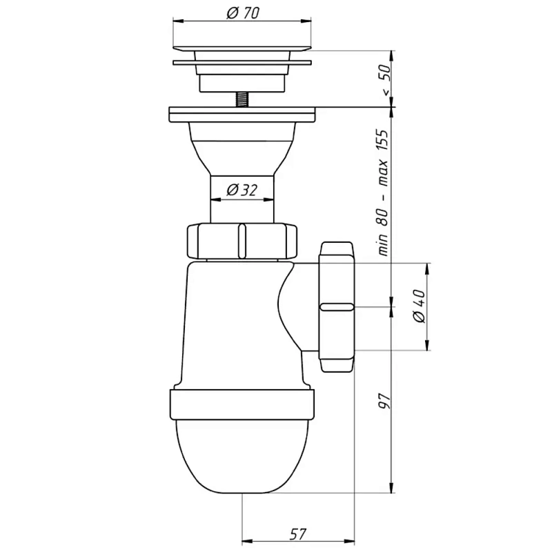 | Вид сифона | Бутылочный |