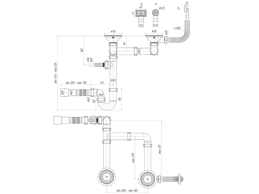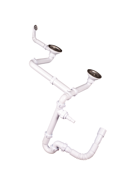 - Двойная конструкция идеально подходит для моек с двумя чашами, обеспечивая эффективный отвод воды из каждой секции.