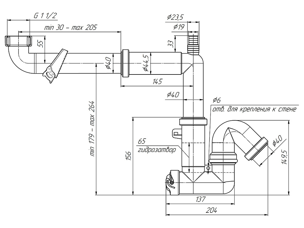 Высота гидрозатвора65 мм