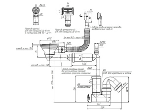 Cифон для мойки АНИ Пласт F серия F5345S 3 1/2 дюйма 40 мм смещенный с гибким переливом и отводом для стиральной машины