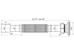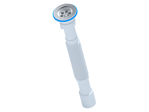 - Гофрированная конструкция позволяет регулировать длину сифона от 391 до 801 мм, обеспечивая гибкость при установке.