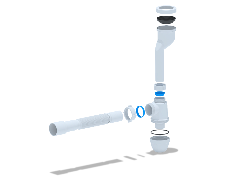 - Качественный пластик устойчив к воздействию влаги, бытовой химии и перепадам температуры, что гарантирует долгий срок службы сифона.