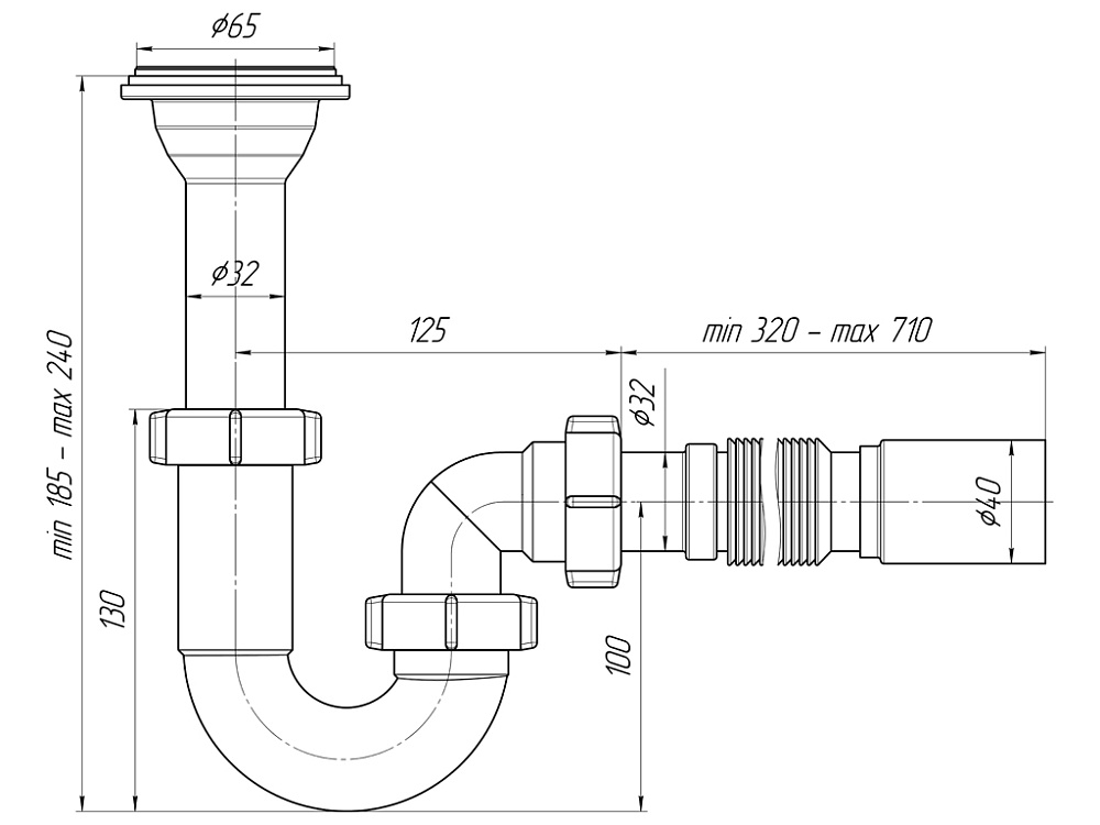 - Гибкая труба 32×40 мм облегчает установку сифона даже в труднодоступных местах и позволяет адаптировать конструкцию под особенности монтажа.