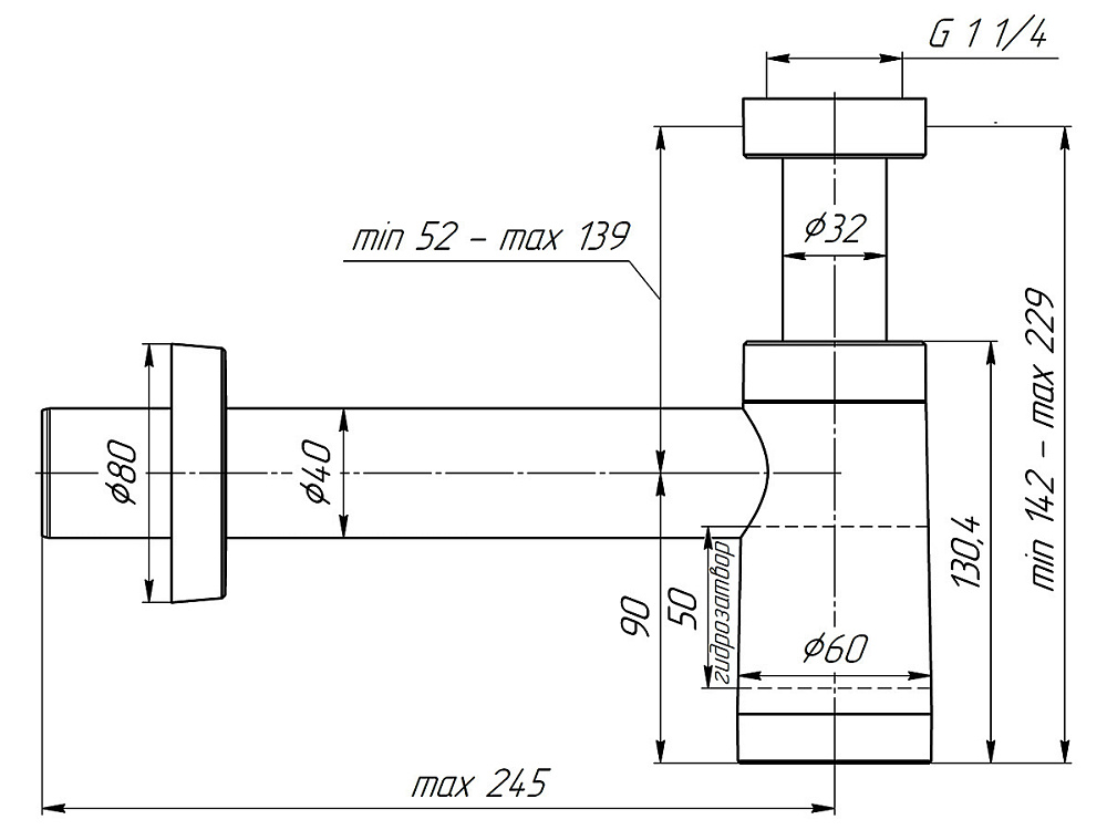 | Вид затвора | Гидрозатвор |