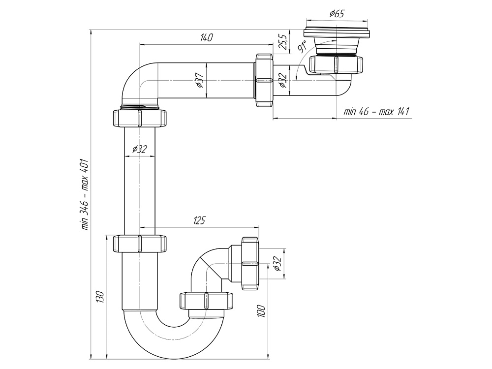 | Вид сифона | Прямоточный |