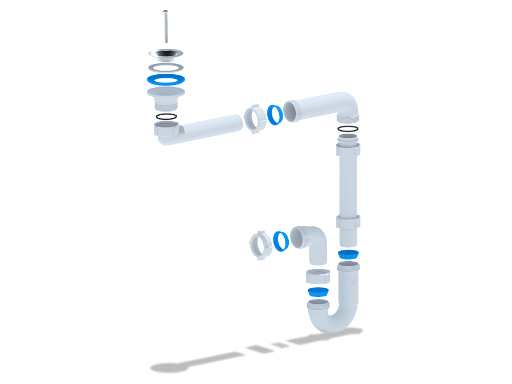 Регулируемый длинный горизонтальный патрубок позволяет сместить колено от сливного отверстия умывальника к стене, что освобождает пространство под умывальником и делает использование ванной комнаты более удобным.
