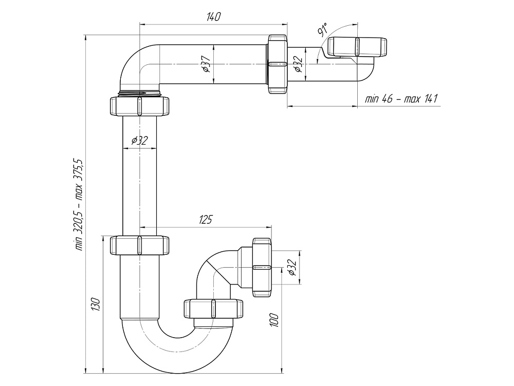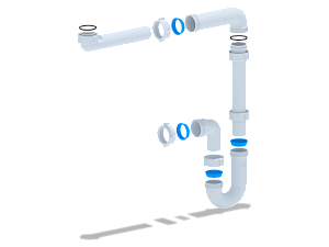 Регулируемый длинный горизонтальный патрубок позволяет сместить колено от сливного отверстия умывальника к стене, что освобождает пространство под умывальником и делает использование ванной комнаты более удобным.