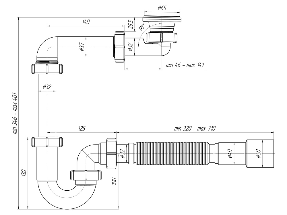 Изготавливаемый из пластика, данный сантехнический сифон позволяет легко подгонять все патрубки под индивидуальные условия установки, что обеспечивает простоту монтажа.