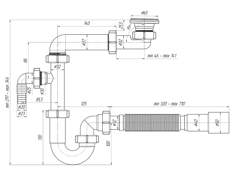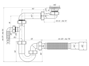 | Комплектация | Сифон смещенный;выпуск;гибкая труба для подключения к канализации 32х40/50 мм;упаковка |