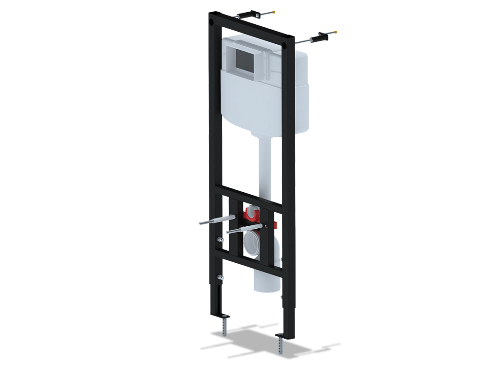 Инсталляция для подвесных унитазов АНИ Пласт WC1110, представляет собой функциональное и надежное решение для оборудования современных санузлов. Монтаж несущей рамы осуществляется непосредственно в капитальную стену, поверх зашивается влагостойкими материалами, такие как ГВЛ и декоративная плитка. Сам унитаз и кнопка смыва располагаются на поверхности стены, создавая эстетически привлекательную композицию.