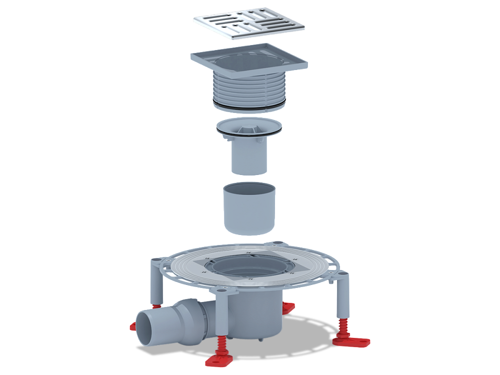 Трап для душа АНИ Пласт THA5614 — это горизонтальный регулируемый сливной трап с гидрозатвором, предназначенный для эффективного отвода воды из душевой комнаты в канализацию. Модель оснащена горизонтальным регулируемым выпуском из пластика диаметром 50 мм и решёткой из нержавеющей стали размером 120×120 мм. Пропускная способность — 45 л/мин, высота гидрозатвора — 28 мм, минимальная монтажная высота — от 75 мм. Корпус выполнен с широкой юбкой для надёжной фиксации гидроизоляции, а четыре опорные ноги с регулировкой высоты обеспечивают точный монтаж по уровню. Решётка выдерживает статическую нагрузку до 300 кг. Конструкция препятствует попаданию загрязняющих частиц в канализацию, предотвращает засоры и легко чистится.