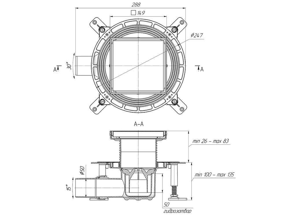 - Надёжная защита от неприятных запахов благодаря гидрозатвору.