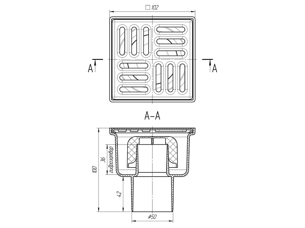 Трап вертикальный нерегулируемый АНИ пласт TA5202 выпуск 50 мм с решеткой из нержавеющей стали 100х100 мм