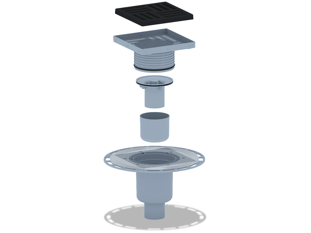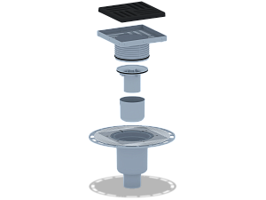 Трап для душа АНИ Пласт THA5716 — это вертикальный точечный сливной трап с гидрозатвором, предназначенный для отвода воды из душевой комнаты в канализацию. Модель оснащена вертикальным выпуском из пластика диаметром 50 мм и прочной чугунной решёткой размером 120×120 мм. Пропускная способность — 60 л/мин, высота гидрозатвора — 28 мм, минимальная монтажная высота — от 75 мм. Корпус выполнен из пластика с широкой юбкой диаметром 250 мм для надёжной фиксации гидроизоляции. Четыре опорные ноги с регулировкой высоты обеспечивают точный монтаж по уровню. Решётка выдерживает статическую нагрузку до 300 кг. Конструкция препятствует попаданию загрязняющих частиц в канализацию, предотвращает засоры и легко чистится. Преимущества трапа АНИ Пласт THA5716:
