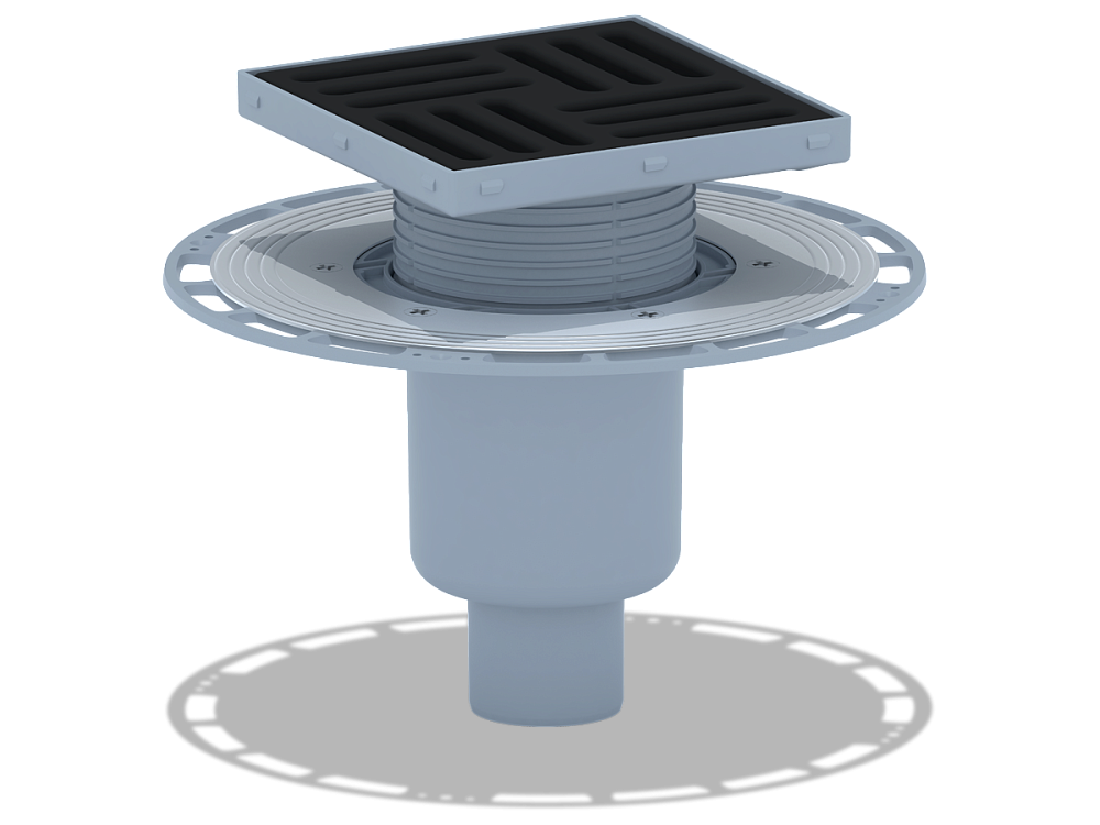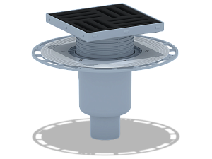 Трап для душа АНИ Пласт THA5716 — это вертикальный точечный сливной трап с гидрозатвором, предназначенный для отвода воды из душевой комнаты в канализацию. Модель оснащена вертикальным выпуском из пластика диаметром 50 мм и прочной чугунной решёткой размером 120×120 мм. Пропускная способность — 60 л/мин, высота гидрозатвора — 28 мм, минимальная монтажная высота — от 75 мм. Корпус выполнен из пластика с широкой юбкой диаметром 250 мм для надёжной фиксации гидроизоляции. Четыре опорные ноги с регулировкой высоты обеспечивают точный монтаж по уровню. Решётка выдерживает статическую нагрузку до 300 кг. Конструкция препятствует попаданию загрязняющих частиц в канализацию, предотвращает засоры и легко чистится.